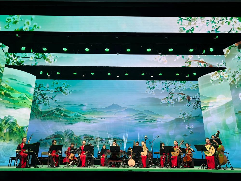 11月21日,中央民族歌舞团民乐团正在演奏乐曲《茉莉花》。(付旭遥 摄)