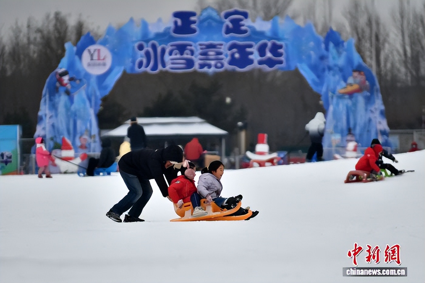 1月18日,河北石家庄迎来降雪,民众在正定冰雪嘉年华游玩,尽情享受冬日雪趣。中新社记者 翟羽佳 摄