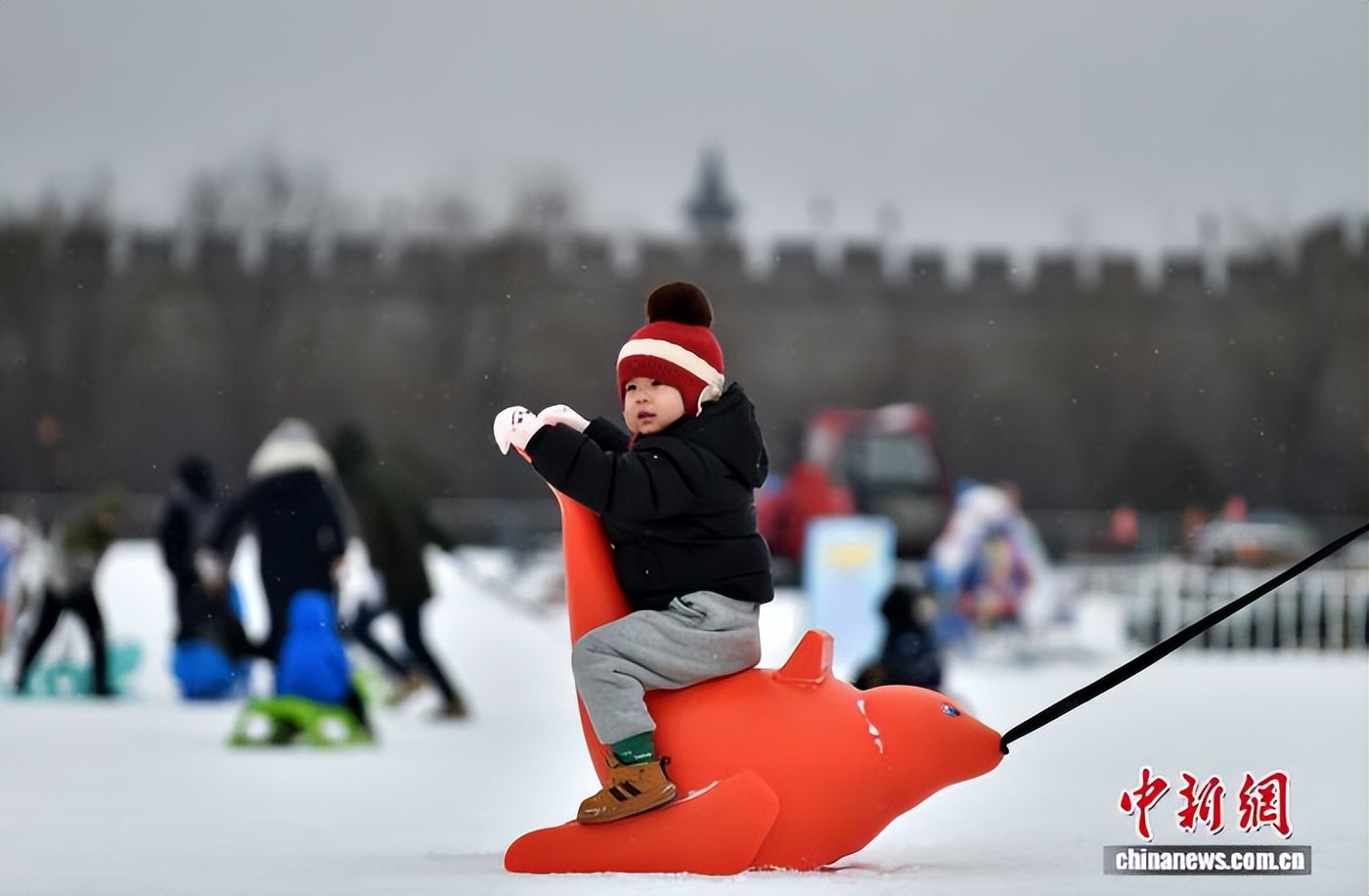 1月18日,河北石家庄迎来降雪,小朋友在正定冰雪嘉年华游玩,尽情享受冬日雪趣。中新社记者 翟羽佳 摄